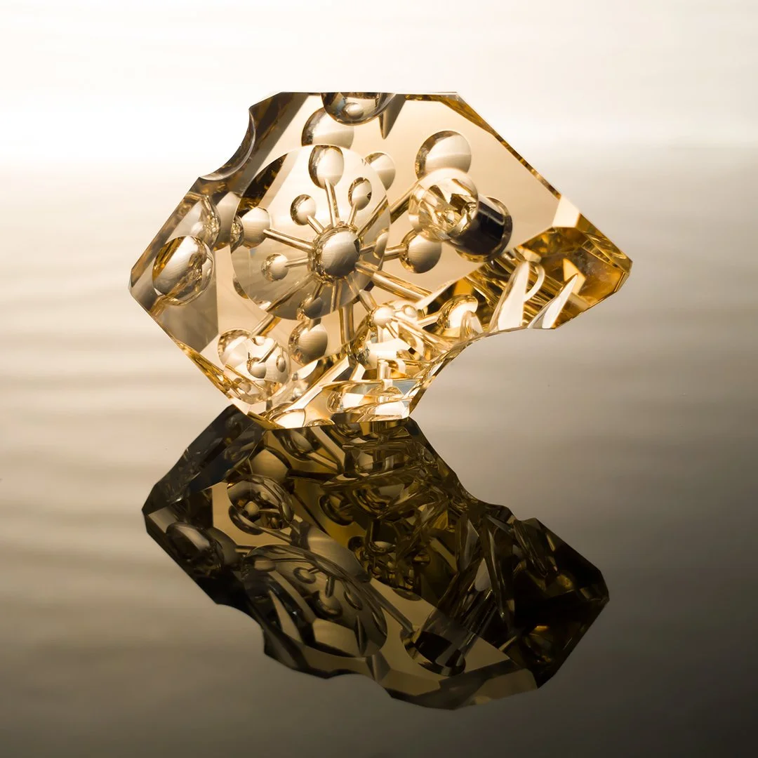 The third in my Psychonaut series of small sculptures is created from a natural piece of O'Briens Creek citrine that I dug many years ago when I spent some time up that way fossicking for gemstones. I am really enjoying sculpting these pieces, they are a study in patience and attention to detail and they allow me to play and draw out other ways of working with gemstones that I want to explore.